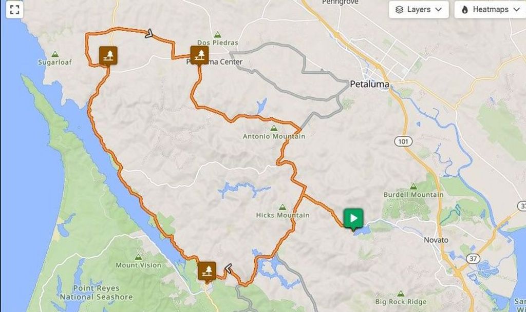 The ride started and ended at Stafford Lake Park in Novato. There were three ride options: